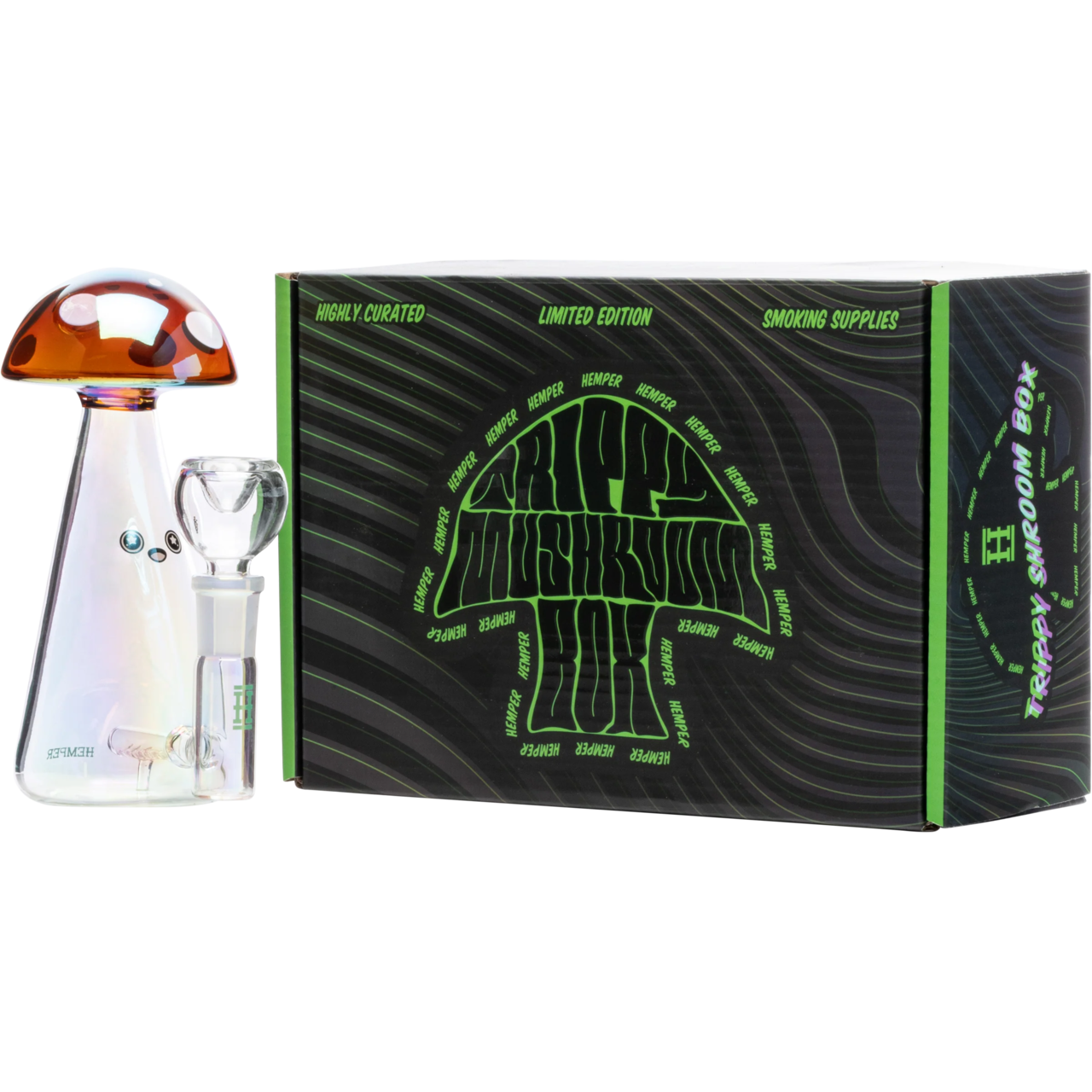 おそらくこれまでに見た中で最も魅力的な作品の 1 つ、6 インチのトリッピー シュルーム ボングは、一見しただけで絶対的な傑作です。このかわいいボンは、上部に赤いキノコで飾られ、虹色の仕上げが特徴 です
